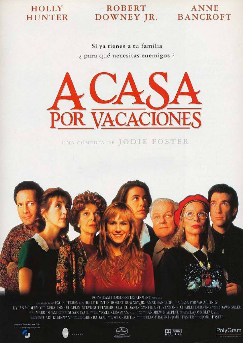 Con la magistral direccion de Jodie Foster, nos sorprende en esta comedia desternillante, tan lejos de sus complicados papeles. Con un reparto excepcional que hacen que la pelicula sea un gran exito. Holly Hunter, Robert Downey Jr, Clare Danes, Steve Gutenberg (el gran actor de comedias de final de los 80, mitico en La loca academia de policia), Geraldine Chaplin, el guapisimo Dylan McDermontt (tan dulce en la escena final del avion, no me importaria que vendria a buscarme a mi) y por supuesto la gran Anne Brancroft siempre genial, tan elegante. Me encantan todos estan geniales.