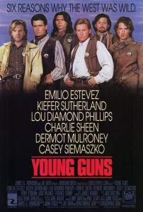 Comentario: Un western mas moderno que nos cuenta la leyenda del legendrio personaje del Oeste Billy el Nino. En la frontera con Mejico, el jefe Tunsall un hombre de negocios y de ley, recluta jovenes foragidos y vgabundos los que educa y ensena a ser buenas personas. El problema viene cuando sus enemigos le matan y sus jovenes amigos se convierten en forajidos, creando la leyenda de Billy el Nino y con el unico fin de vengar la muerte de su maestro, un clasico de la epoca que se vio reforzada con una bnd sonora mitica, con la cncion de Bon Jovi entre otras. Parte del exito de la peli radica en el joven elenco de promesas de la epoca, hoy grandes estrellas muchos de ellos, los hermanos Emilio Estevez y Charlie Sheen, Kiefer Sutherland, Lou Diamond Philips, Dermott Mulroney,…. y secundarios de luxe como Terence Stamp y Jack Palnce.