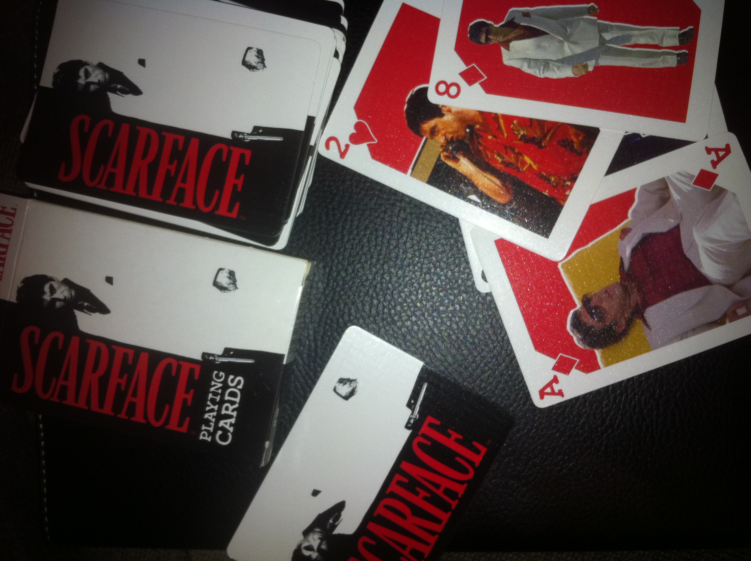 Una baraja de cartas muy peculiar, con las imagenes de una de las mejores peliculas de accion con Al Pacino, miticooooo como Toni Montana, con Michelle Pfeifer, Steven Bauer, Maria Elizabeth Mastroantonio, … Imagenes inolvidables de la pelicula «El precio del poder» o «Scarface» como prefirais.