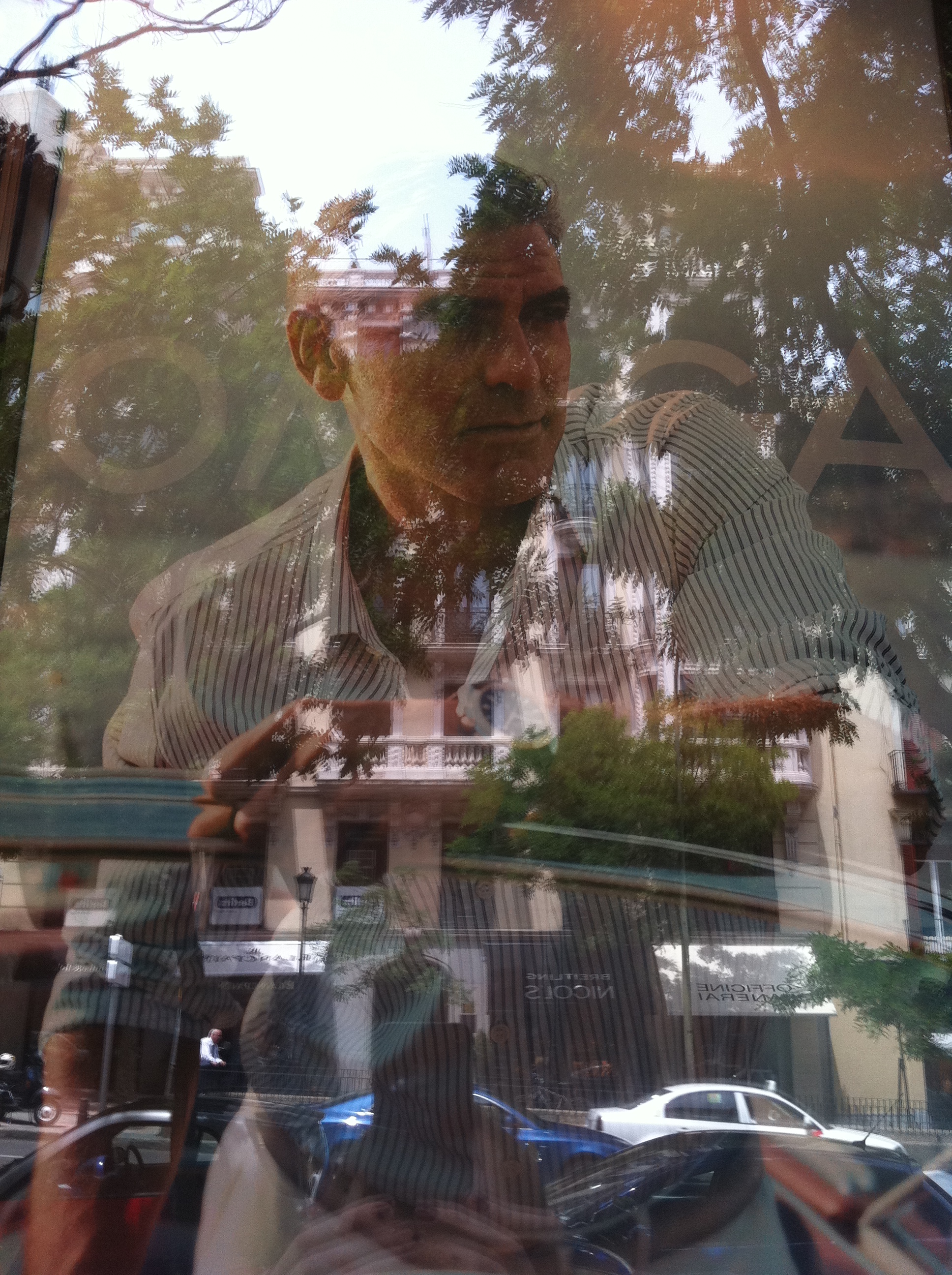 No se ve muy bien la foto porque hace reflejo en el cristal, es  el escaparate de la tienda de una famosa marca de relojes suizos.  El de la foto es George Clooney y todas las mananas me alegra la vista y  le doy los buenos dias, una buena forma de empezar el dia. Al lado hay otra de Nicole Kidman pero como comprendereis me gusta mucho mas George.
