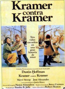 Comentario: Una historia dramtica, de una familia que pasa por sus peores momentos cuando la madre decide abondar a su marido y a su hijo de 7 anos. El padre y el hijo se encuentran con una situacion completamente nueva con un hijo que echa de menos  a su madre y un padre impotente ,que tiene que ayudar a su hijo y  seguir trabajando, una situacion delicada llena de momentos criticos que consiguen superar juntos. Hasta que la madre aparece de nuevo para solicitar la custodia del hijo. Como ya he dicho todo un dramon, aparte de una pelicula buenisima que se vio recompensada con 5 Oscar’s de los importantes pelicula, director, guion adaptado, actor, el pequeno pero grandisimo Dustin Hoffman y la siempre grande Meryl Streep en  un duelo interpretativo, que es un lujazo, un duelo de titanes.