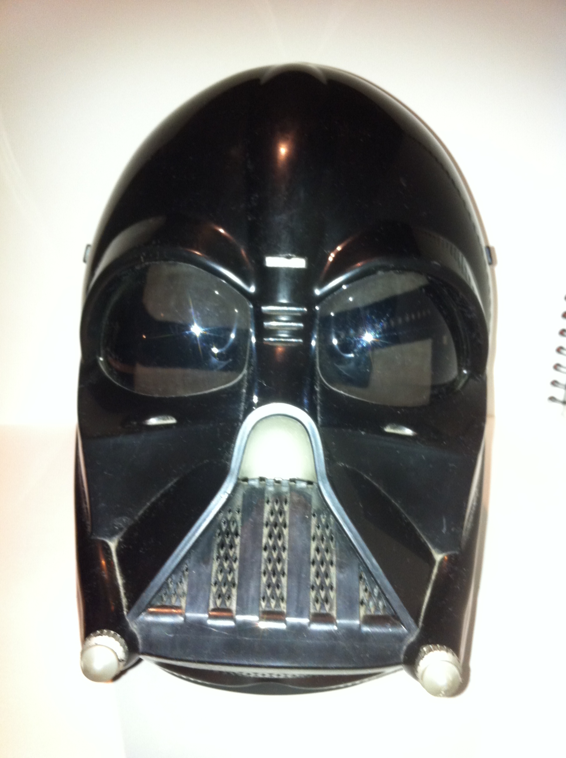 La mascara de Dar Vader la verdad es que ya lleva unos anitos conmigo y ha sufrido lo suyo, lo digo porque le falta parte, el casco pero otro dia os contare la historia del casco que es de pelicula. Viene con frases miticas de la peli y un micro dentro que te distorsiona la voz tipo Dar Vader, el no va mas, anda que no nos la hemos puesto veces de cachondeo. Todo un clasico.