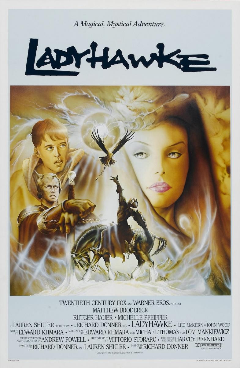 Comentario: Una pelicula que tiene de todo un poco una preciosa historia de amor, aventuras, magos y hechizos,… Narra la historia de amor entre una pareja que ha sido hechizada por un mago y estan maldecidos y destinados a no encontrase nunca ya que por el dia ella se convierte en halcon y el es humano, mientras que por la noche ella es humana y el se convierte en lobo. Asi que lucharan contra su destino con unos maravillosos companeros de viaje con el fin de poderse volver a ver.  Una pelicula de mi queridisimo Richard Donner, otro de mis adorados directores con unas interpretaciones magistrales de una jovencisima e impresionantemente bella Michelle Pfeiffer con pareja entranable en la pelicula el mitico actor sueco Rutger Hauer, que con este y otros papeles entro en mi lista, acompanados por un jovencisimo Mathew Broderick, que es encantador y uno de los garndes por todos sus papeles adolescentes, porque en los ultimos tiempos la verdad es que no hace mucho cargar con ser el maridisimo.