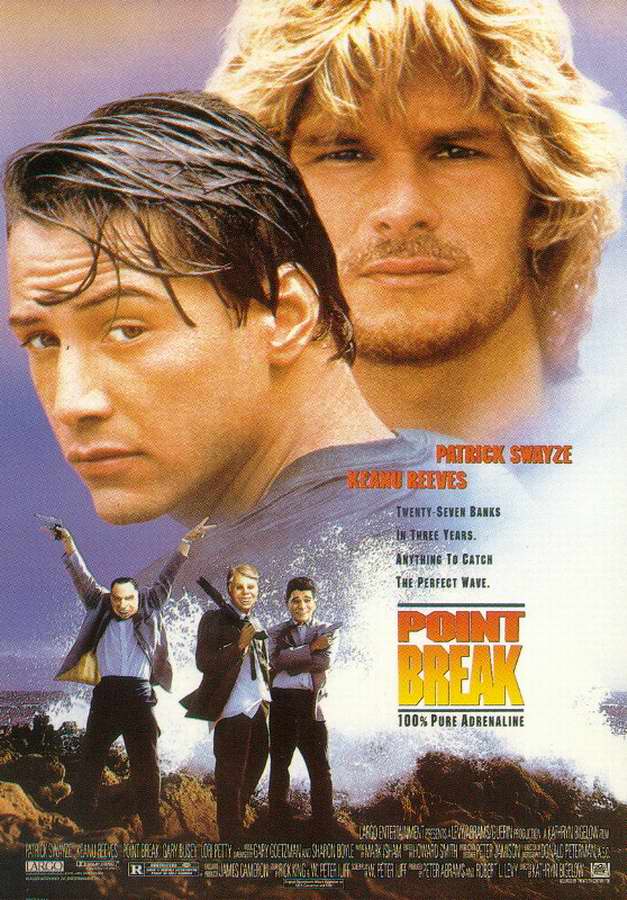 Comentario: Pelicula de accion donde una pareja de policias andan detras de un grupo de atracadores, para averiguar quienes son uno de ellos se inflitrara en el entorno surfero porque tienen la teoria de que los ladrones son un grupo de fanaticos del surf que roban para despues de viajar en busca de la ola perfecta. Y aunque parezca de cona, aciertan y dan con l banda de ladrones de los expresidentes.