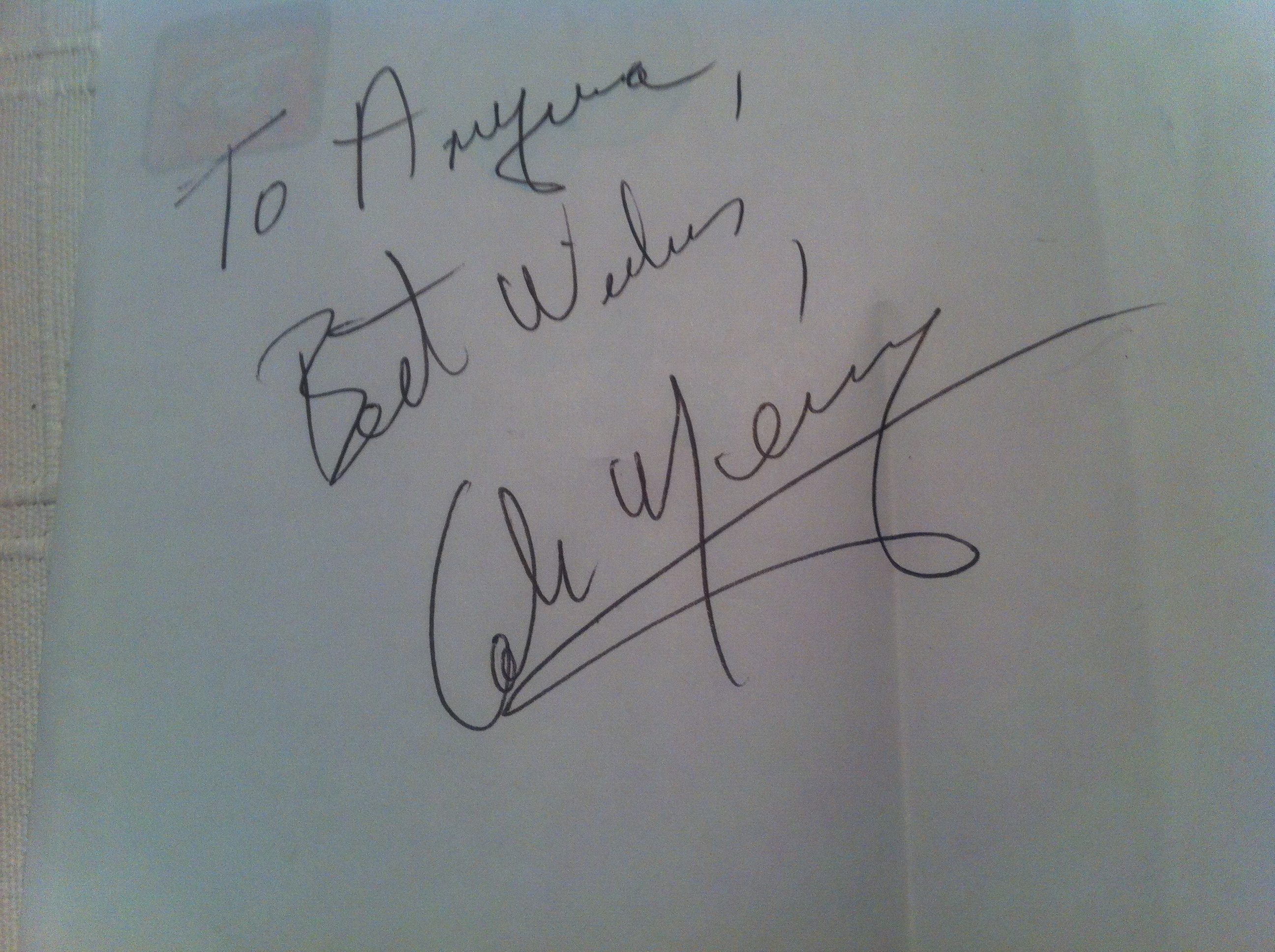 Toma Yaaaaaa¡¡¡¡ Que ilusion me hace ni mas ni menos que una super estrella internacional, el actor irlandes Colm Meaney, que asi de buenas a primeras puede que no os suene pero si os digo que sale en «La jungla de cristal II», «Dick Tracy», «El ultimo mohicano», «Con Air», «Layer Cake», «La Conspiracion»,…. entre muchisimas mas, solo he querido que veais el nivel de mi autografo y si le veis segurisiiiimo que os suena porque es un principal y secundario de lujo. Tengo que dar las gracias a mi Super Bro y su amiga Susana y deciros amigos que en el fondo soy muy friki asi que si veis algun famoso le pedis un autografo para mi o para la web. Muchas Graciasssssss