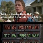 Si, si, si, …asi lo digo y asi lo podeis ver en la foto que adjunto, este semana en concreto el lunes 4 de Febrero del 2013 entramos en el futuro jajajjaja esa es la fecha que pone en el Delorian de mi queridisimo Doc y que traslada a mi mas querido Marty Mc- Fly o Michael J. Fox (mi primer idolo juvenil) al futuro en la mitica, inegulable ygenial «Regreso al futuro», que puntazo. Si es que somos una familia de cinefilos, Gracias Bro.
