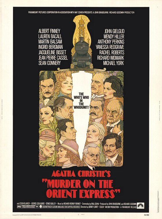 Comentario: Es la adaptación de una de las novelas mas famosas y características de nuestra querida Agatha Christie que como siempre nos tiene acostumbrados a mantenernos en vilo, totalmente intrigados en torno a un misterioso crimen. En este caso todos los protagonista se encuentran disfrutando de un viaje en el mítico Orient Express  y entre ellos se encuentra el famoso detective Hércules Poirot, todos los viajeros parecen muy peculiares e ilustres y nuestro detective esta disfrutando analizando a todos ellos, hasta que se sucede el misterioso crimen, un peculiar empresario ha a parecido muerto con doce puñaladas. Como siempre aparentemente todos tienen la perfecta coartada y ninguna razón para haberlo matado, pero a Hércules no se le escapa ningún detalle y como siempre tras una minuciosa investigación dará con el asesino o asesinos. Me encanta, un peliculon que obtuvo seis nominaciones, llevándose una Ingrid Bergman como mejor actriz secundaria, con un director sublime como Sidney Lumet y un reparto inmejorable que hacen de la película una obra maestra.
