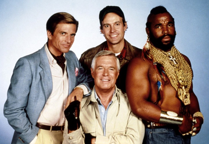 Una pandilla mítica, entrañable nos encariñamos con cada uno de los personajes con su carácter, con sus métodos, con sus manías y sobre todo con ellos y con todo lo que les pasaba menudas aventuras, explosiones, ocurrencias,… Y parte del éxitos radicar en la carectizacion de los personajes encabezados por el gran George Peppard que ya era un grande antes d ela serie y luego yo diría que el que alcanzaría mas fama fue Mr. T. que llego a enfrentarse con Rocky y por ultimo Dwight Schultz y Dirck Benedit.