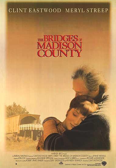 Comentario: Una de las mejores películas románticas para mi de todos los tiempos, me encanta. Y el éxito aparte de la sublime dirección de Clint, es la magia o química que hay entre los protagonistas grandiosos los dos Miss Meryl y Mr. Clint. Que nos hacen participes de la relación que surge entre un veterano fotógrafo del National Geographic que tiene que fotografiar los puentes de condado y una normal ama de casa en su granja con su familia. El destino, el momento, las situación, hará que pasen un fin de semana impresionante, eterno, pasional,… y lo dejo aquí porque hay que verla, impresionante hay momentos en los que se me pone la piel de gallina, alucinante. Toda una historia de amor imposible y muy posible, de las que nos hace vivir el cine.