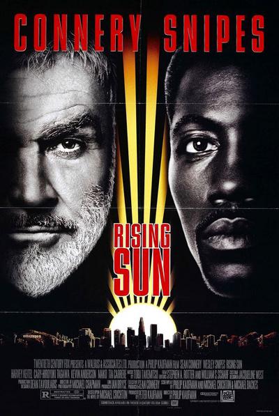 Comentario: Una película muy de los 90´s de una pareja peculiar de policías Wesley un rudo policía de homicidios y Connery un agente retirado experto en la cultura japonesa, que tendrán que trabajar juntos en una compleja investigación tras el asesinato de una modelo en un multinacional japonesa. Y ya esta todo el lío servido mafias orientales, dineros, asesinatos, intriga, thriller,… Con una pareja con buena quimica Wesley Snipes y Sean Connery y secundarios de lujo como el gran Harvey Keitel, Steve Buscemi,…